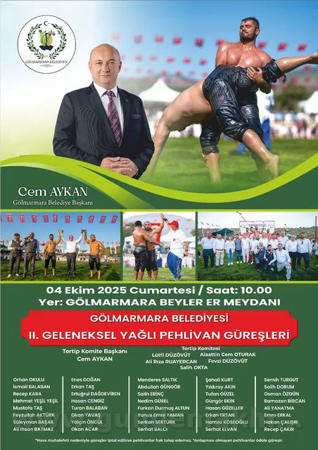 Gölmarmara Belediye Başkanı Cem Aykan, düzenlenecek II. Geleneksel Yağlı Pehlivan Güreşleri ile ilgili yaptığı açıklamada, “Tarihi ve kültürel mirasımızın bir parçası olan ata sporumuzu yaşatmak için bu yıl 2.’sini düzenlediğimiz yağlı güreşlerimizi büyük bir coşku ve gururla gerçekleştireceğiz. Dostluğun, kardeşlik ve centilmenliğin en güzel örneklerinden biri er meydanlarında sahnelenir. Bu yıl da Beyler Er Meydanı’nda birbirinden yiğit, ülkemizin dört bir yanından gelecek başpehlivanlarımız kıyasıya mücadele edecekler. Birlik ve beraberlik içinde geçecek bu özel günde siz değerli halkımızı da 4 Ekim Cumartesi günü Beyler Er Meydanı’na davet ediyoruz.” dedi.